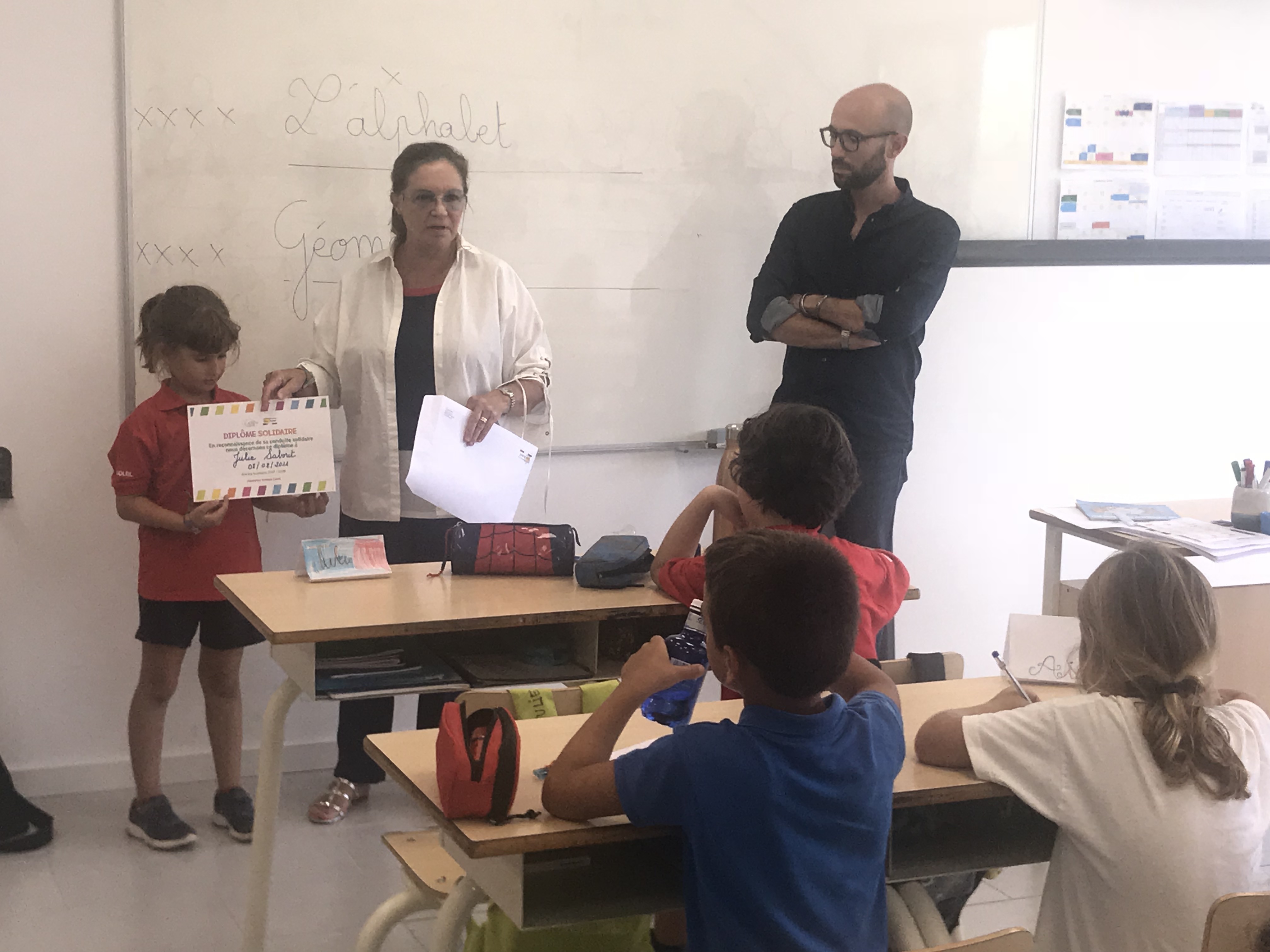 El pasado mes de agosto, nuestra alumna Julie Saborit de CE1B celebró su cumpleaños solidario, recogiendo entre todos sus compañeros material escolar para entregar a los niños de la escuela de Mbackombel de Senegal.